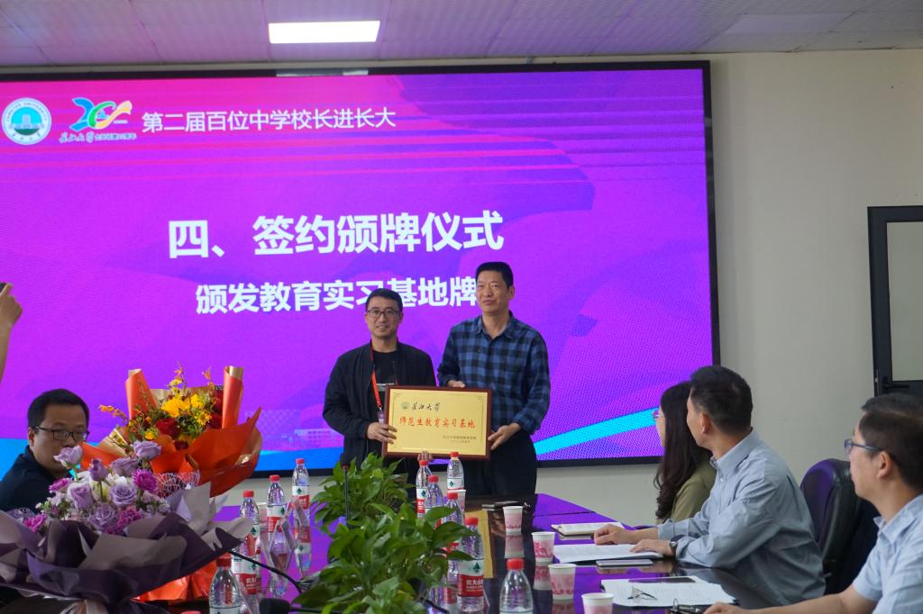 会议最后,公司党委书记为蕲春一中、武穴中学和武穴育才中学颁发教育实习基地牌,陪同高中董事长一行参观了10.24英雄纪念馆、公司实验室以及欣赏了茶艺表演。