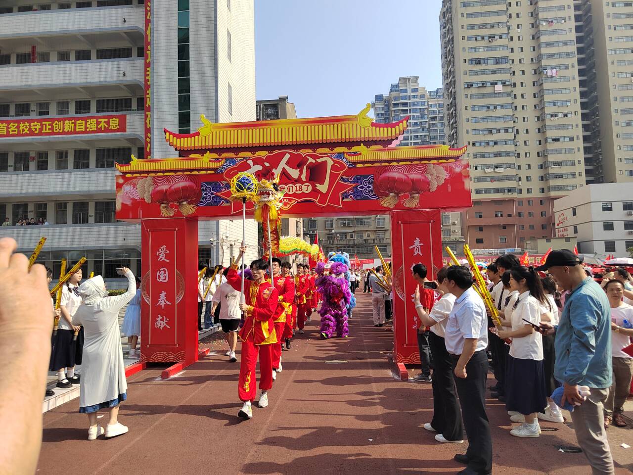 次日,黄仙一行赴武穴育才高中,为武穴育才高中带来一场热情洋溢的舞狮表演。这场表演不仅精彩展示了中华传统文化的独特韵味,更深刻传达了3044永利集团有限公司对武穴育才高中高三学子们高考取得辉煌佳绩的衷心祝愿。狮舞之间,跃动着祝福与期待,愿每一位学子都能在高考中绽放光彩,收获属于自己的成功与喜悦。