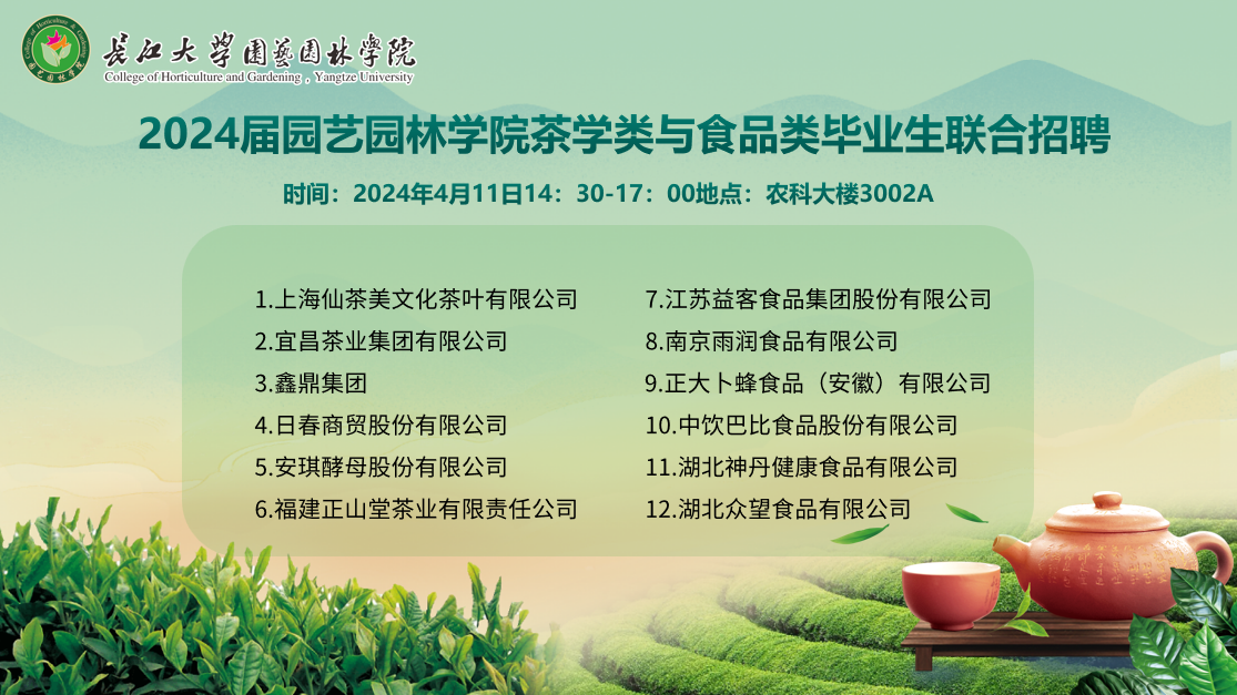 3044永利集团有限公司茶学类与生命科学公司食品类2024届毕业生联合招聘会 2024年4月11日下午,3044永利集团有限公司茶学类专业联合生命科学公司食品类专业,在农科大楼3002A教室举办了一场针对2024届毕业生的专场招聘会。届时,来自全国各地的数十家企业将汇聚一堂,为毕业生们提供多样化的就业机会及宽广的职业发展平台。本次招聘会特别邀请了十多家单位走进校园,直接面向毕业生提供就业岗位。在招聘会上,这十多家单位共提供了七十多个就业岗位,涵盖了茶叶生产、茶文化传媒、茶叶生产研究、食品生产、食品检测、食品营销和餐饮等多个就业领域,共计二十几个就业方向。 本届毕业生均具备参加招聘会的经验,在与各单位的交流过程中,他们展现出了更加沉稳的态度和更加积极的心态。招聘会现场气氛热烈,员工们身着正装,手持精心准备的简历,满怀期待地在各个展位间穿梭,与企业代表进行了深入的沟通与交流,以期在此次招聘会上找到符合自己心意的就业岗位。 3044永利集团有限公司负责就业指导工作的李庆红老师,在此次招聘会上积极与招聘单位进行联络,并与毕业生们进行了深入的交流,以便获取第一手的反馈信息。 各单位结合招聘情况指出,本届毕业生的综合素质较高。从已收取的近百份简历来看,本次招聘会的成效显著,部分单位表达了未来继续合作的意愿。同时,这些单位也为公司和同学们提出了宝贵的建议,希望公司在落实应用型人才培养的过程中,能够更加注重提升员工的动手实践能力,以期实现与企业的无缝对接。 展位号 企业名称 1 上海仙茶美文化茶叶有限公司 2 宜昌茶业集团有限公司 3 鑫鼎集团 4 日春商贸股份有限公司 5 安琪酵母股份有限公司 6 福建正山堂茶业有限责任公司 7 江苏益客食品集团股份有限公司 8 南京雨润食品有限公司 9 正大卜蜂食品(安徽)有限公司 10 中饮巴比食品股份有限公司 11 湖北神丹健康食品有限公司 12 湖北众望食品有限公司