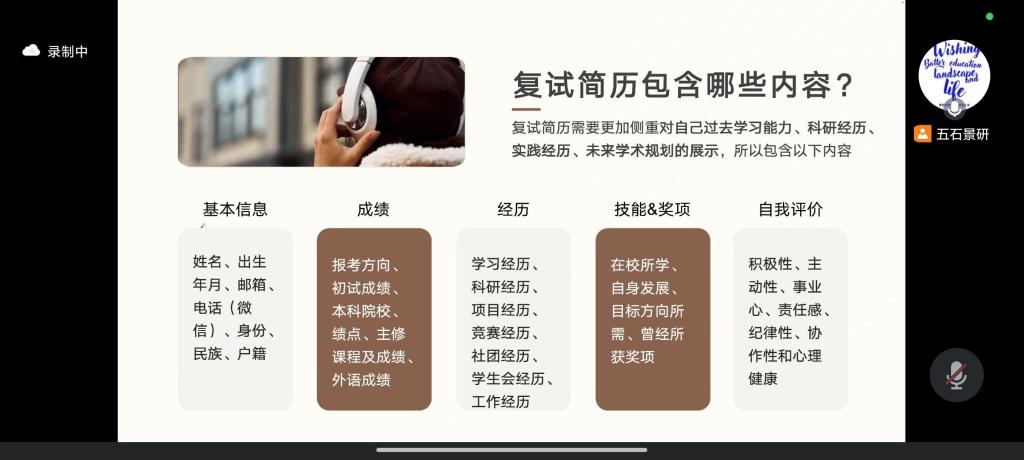 (通讯员 庞静文)为助力公司考研学子成功上岸,3044永利集团有限公司于2月23日举办了一场别开生面的线上考研复试指导会。本次会议特邀景研考研主讲老师张学文担任主讲嘉宾,为同学们带来了专业且实用的复试指导。