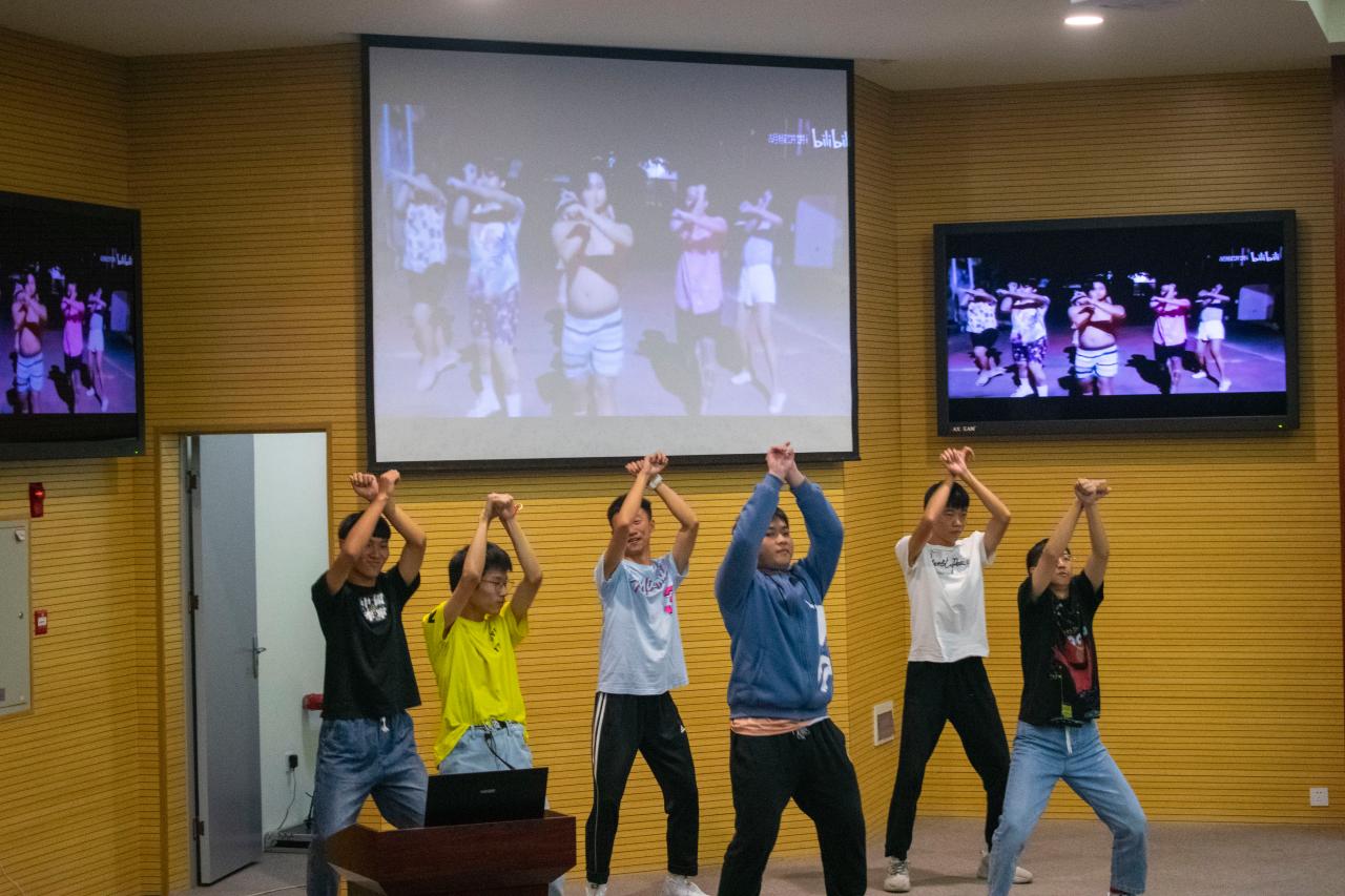 晚会在激情的舞蹈中拉开帷幕,氛围逐渐的活跃,员工们的兴致也逐渐被气氛带动起来!接着颁奖仪式的举行,颁奖的奖项为优秀部长,优秀副部长,优秀干事。学长学姐们的优秀工作成绩为20级同学们树立了榜样,支持着他们努力工作的信念。接着晚会正式进入表演环节,此次迎新晚会由员工会各部门准备,一共有14个节目,节目中间穿插着有趣的小游戏,调节着现场的氛围,缓解了即将上场的同学们的紧张,使整个晚会有条不紊地顺利进行,每个人的投入都汇聚在一起,吸引着台下的观众,青支队的热歌辣舞,更是燃爆全场,将晚会推向高潮。