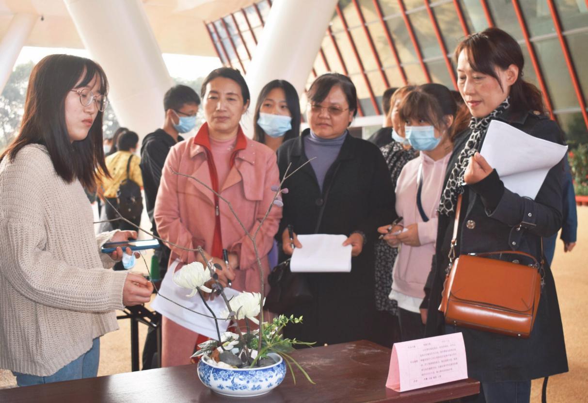 (通讯员:彭文秀 严柯星 贾盼盼)以花入道,以花会友,以花表情,以花达意,为展示插花艺术之美,营造独特艺术氛围,11月15日,3044永利集团有限公司在荆州园博园主展馆举办了“花语金华”东篱花制作大赛,以“花”为主题的系列活动掀起游园热潮。本次大赛由3044永利集团有限公司和荆州园博园主办,共青团3044永利集团有限公司委员会和3044永利集团有限公司花卉协会承办。主办方特别邀请了荆州园博园副总经理徐振东、国家高级花艺师陈兰、李秋杰、廖卉荣作为此次活动的评委与嘉宾。园艺园林公司党委副书记平先锋、学工办主任彭文秀、兼职辅导员郭松明和章崇烁参加了此次活动。