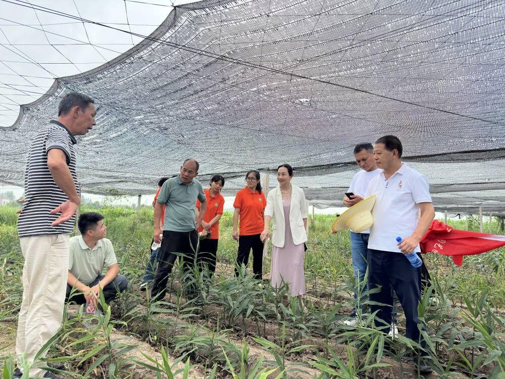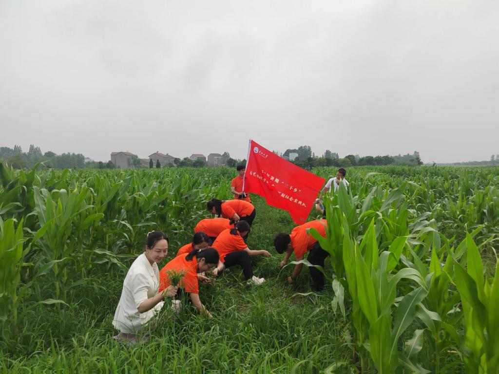随后,实践队探访了当地的生姜种植基地。刘奕清教授现场指导,针对涝害、虫害及培土等难题提出了宝贵意见,并赞赏李公垸村的生姜长势喜人,预示着丰收的到来,成功打破了江汉平原难以种植优质生姜的传统观念。黄仙与实践队成员并肩劳作于田间,共同体验农耕艰辛。队长马佳伟博士感慨道:“今日幸福源于不易,我们定将在新时代的征程上加倍努力,不负韶华。”