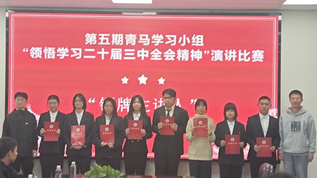 (通讯员 李灿阳 汪晓露 )为深刻领悟学习贯彻党的二十届三中全会精神,增强公司员工的政治意识,提高政治站位,11月17日晚,公司于农科大楼3002A举行第五期青马学习小组“领悟学习二十届三中全会精神”演讲比赛。学工办主任张颖旭、团委书记吴山、员工会主席团成员及全体青马小组成员参加本次会议。