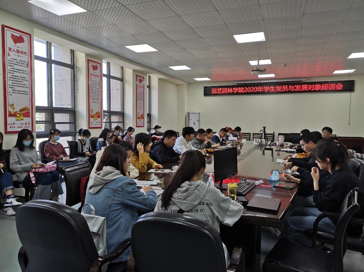 (通讯员 :刘力源)为强化党性修养、提高政治觉悟,2020年11月12日14:30,公司在农科大楼3002会议室举办了2020年下半年员工党员与发展对象座谈会,园艺园林公司党委组织员田立春、学工办主任彭文秀、员工党员及发展对象参加了此次会议。