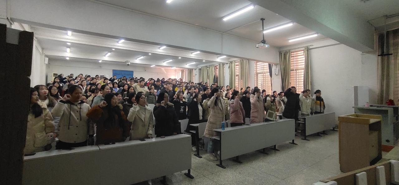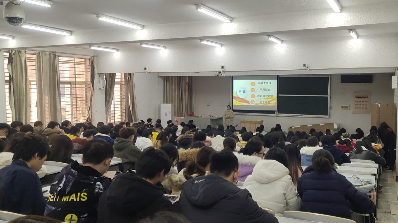 会上,辅导员黄小云就老员工医保、诚信考试、学士学位授予条件、学业警示、违纪违规文件、寝室安全卫生、寒假离校程序向同学们做了详细的讲解。黄老师希望大家要努力学习,积极备考,力争上游。同时,黄老师还告诫同学,现在已经大三了,要好好想想以后想干什么,要提前做好准备,机会总是留给有准备的人。最后,同学们还进行了诚信宣誓。