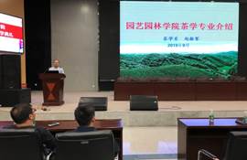 接下来的议程为专业介绍,首先上台发言的是风景园林系主任肖国增老师,他向同学们介绍风景园林专业的学科范畴、就业去向与职业类别、专业办学条件,并就近几年行业的前景对专业的发展历程做了详细的分析,同时向员工展示了往届员工作品,对在场的同学提出了殷切希望。之后由茶学系主任赵振军老师向同学们详细介绍了茶学专业的基本情况、办学资源以及就业方向,同时列举了几位茶学专业的优秀员工事迹,令同学们啧啧称赞。随后,园林系主任张威威老师紧接其后,详细介绍了园林专业的教学平台与团队力量以及良好的学术氛围,以及本专业的培养计划和对未来的展望。副经理肖波副教授就园艺专业的含义、培养目标、教学计划与学科内容展开详细的解说,让新生们耳目一新,豁然开朗。