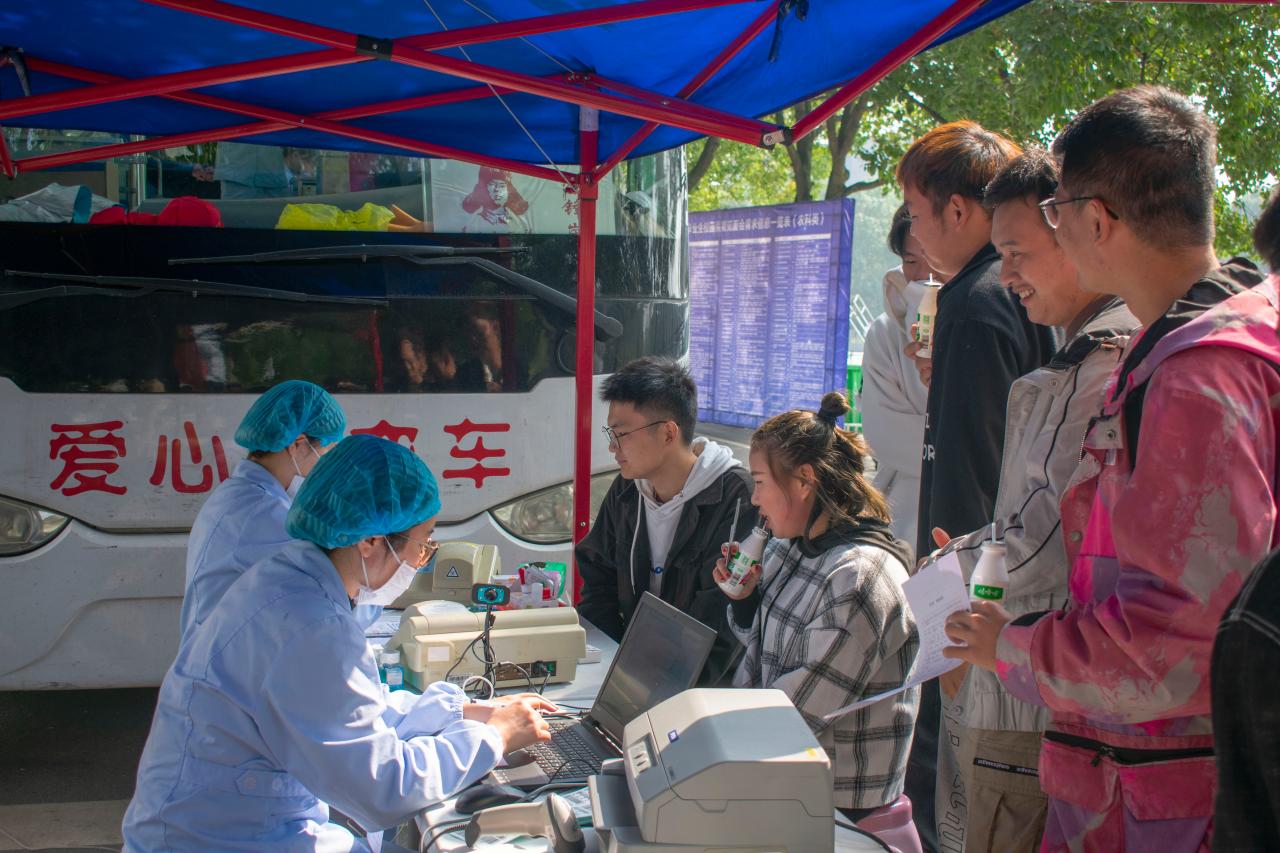 (通讯员:李攀 赵宇 陈明)为预防今年秋冬季节疫情反弹,保障血液资源供应,发扬无私奉献的精神。同时,为了培养青年学子的奉献意识和服务意识,3044永利集团有限公司青支队和荆州市中心血站工作人员联合发起了以“热血战疫,你我同行”为主题的无偿献血活动。本次活动由全体青支队成员共同组织开展,于3044永利集团有限公司西校区风华园主干道举办。2020年10月29日上午10时,青支队志愿者和荆州市中心血站工作人员准备就绪。广大学子积极参与,一股无偿献血的爱心热潮在长大校区内澎湃而起。本次献血活动中,献血流程规范,医务人员专业,志愿者们实时维护现场秩序,轮流为同学们服务,组织献血同学依次进行信息登记、血液类型检验、静脉采血等相关准备工作。