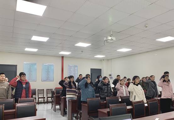 会议最后,全体党员队列整齐,高举右拳,庄严宣誓,表达了为共产主义事业奋斗终生的决心!本次大会应到46人,实到43人,其中有表决权的正式党员41人,实到38人。表决结果37票同意,一票弃权,符合章程规定。