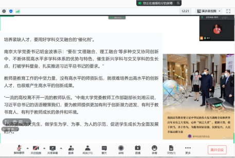 座谈会上,主持人分别带领大家学习了习近平在清华大学考察时的重要讲话。讲话中,习近平强调,百年大计,教育为本。今年是中国共产党成立100周年,我国开启全面建设社会主义现代化国家新征程。党和国家事业发展对高等教育的需要,对科学知识和优秀人才的需要,比以往任何时候都更为迫切。我们要建设的世界一流大学是中国特色社会主义的一流大学,我国社会主义教育就是要培养德智体美劳全面发展的社会主义建设者和接班人。我国高等教育要立足中华民族伟大复兴战略全局和世界百年未有之大变局,心怀“国之大者”,把握大势,敢于担当,善于作为,为服务国家富强、民族复兴、人民幸福贡献力量。广大青年要肩负历史使命,坚定前进信心,立大志、明大德、成大才、担大任,努力成为堪当民族复兴重任的时代新人,让青春在为祖国、为民族、为人民、为人类的不懈奋斗中绽放绚丽之花。会议结束后各团支部的对会议的主要内容进行分析,同学们也纷纷进行讨论以及主动在会后复习会议内容。