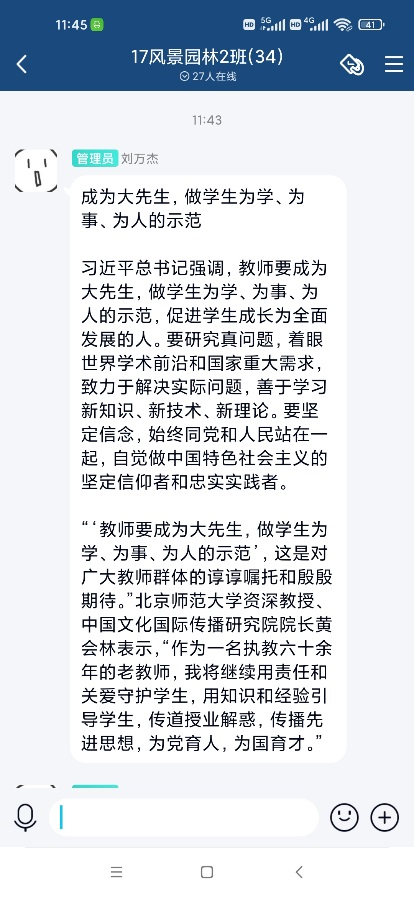 通过组织学习《习近平总书记在清华大学考察时的重要讲话精神》,同学们都能感受到习近平总书记对于我们广大青年朋友们的殷切期望,我们作为新时代的年轻一代,也必须肩负起历史交于我们的重任,相信终有一日我们也可以站在自己的专业领域,为我国的科技、农业、社会发展贡献力量。