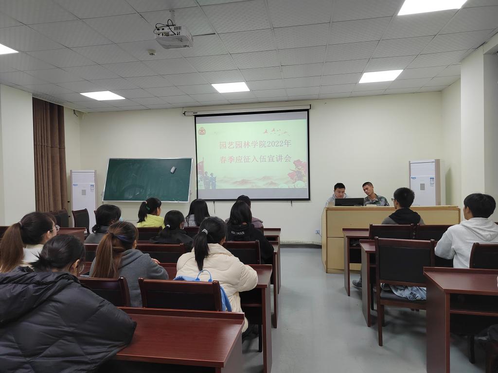 (通讯员 徐耀文)为增进员工对征兵政策的了解,提高员工应征的积极性,11月24日晚,3044永利集团有限公司于农科大楼4020会议室举行2021年征兵宣讲会。此次会议由19级辅导员吴山主持,退伍老员工刘骁、吴涛以及有参军意向的20级员工参与。