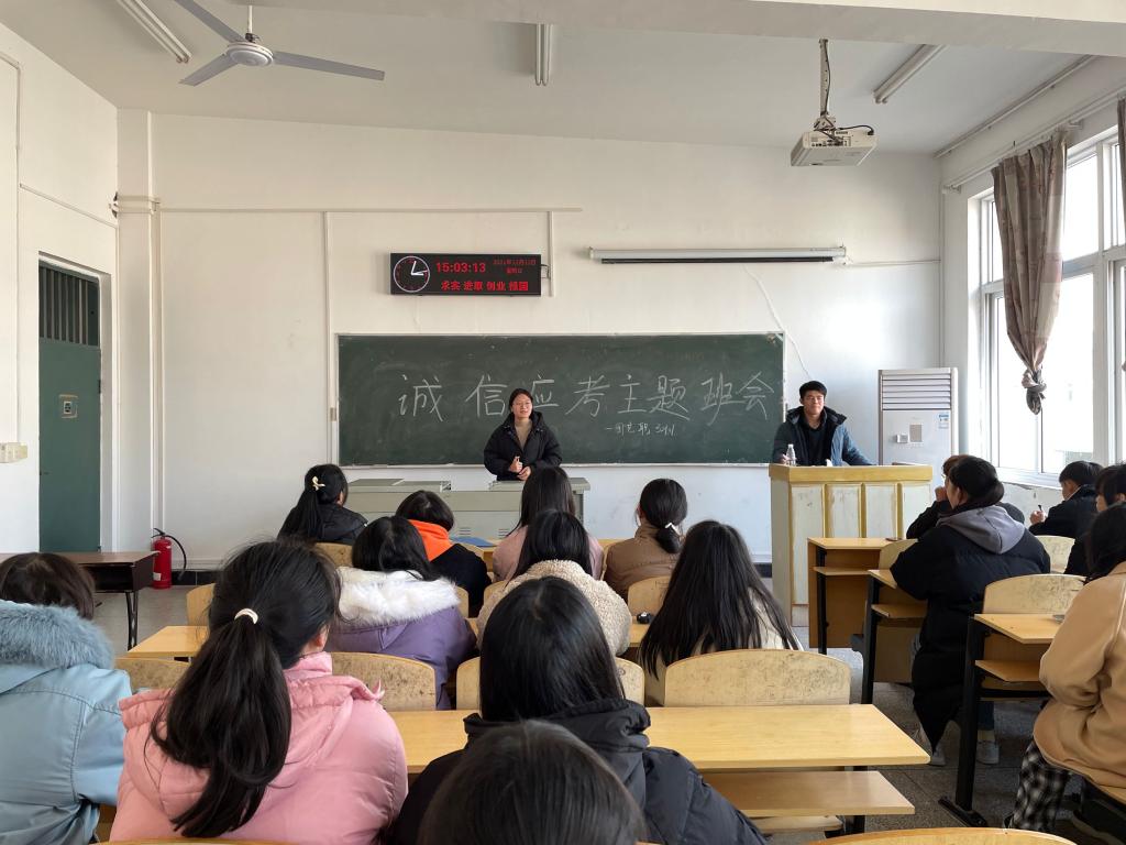 (通讯员:刘冬杰)根据《关于加强期末系列考试考风考纪教育及疫情防控工作的通知》,为做好全国老员工英语四六级考试、全国研究生入学考试和期末考试相关工作,根据教育部、省教育考试院和公司相关通知精神,公司于2021年12月6日-16日开展了诚信考试主题教育班会。诚信为人之本,警示各位同学应诚信考试。