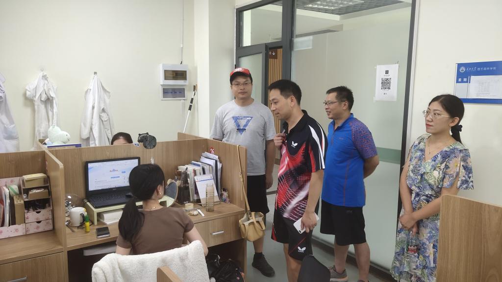 老师们先后来到农科大楼实验室和自习室与留校员工亲切交流,询问同学们留校学习生活情况,了解同学们饮食休息情况、自习教室使用情况、当前学习生活需要等。老师们亲切叮嘱同学们最近气温较高,务必注意防暑,同时嘱咐同学们要严格遵守公司规定,树牢安全意识,注意疫情防控和安全用电。