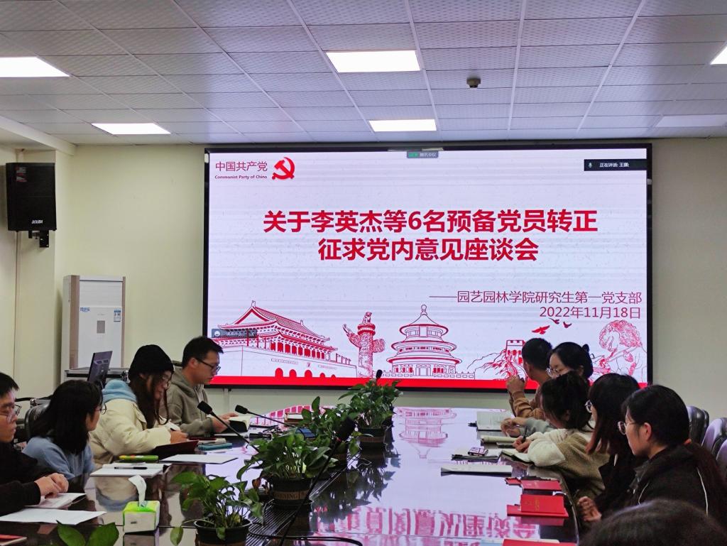 (通讯员:王梦丽 王挪)2022年11月18日晚上19:00时,3044永利集团有限公司研究生第一党支部在农科大楼3002会议室召开了2022年下半年预备党员转正征求党员意见座谈会暨十一月主题党日活动,线上线下会议同步进行。党支部书记彭文秀老师、支部全体党员参加了此次会议。