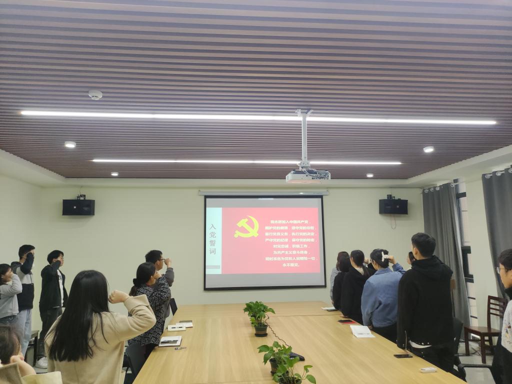 最后支部成员面对党旗,重温入党誓词。