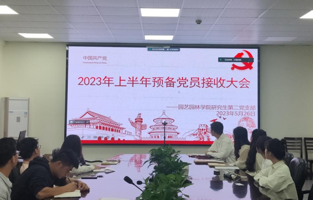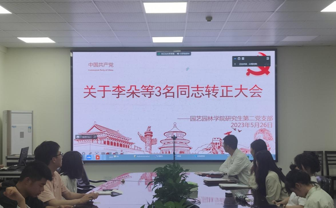 (通讯员:杜雨菲)2023年5月26日晚7时,3044永利集团有限公司研究生第二党支部在农科大楼3002组织召开2023上半年接收预备党员和预备党员转正大会暨五月党日活动与政治理论学习。本次会议线上线下会议同步进行,参加人员有研究生第二党支部书记吴山老师、支部全体党员,以及接收的预备党员与转正党员。