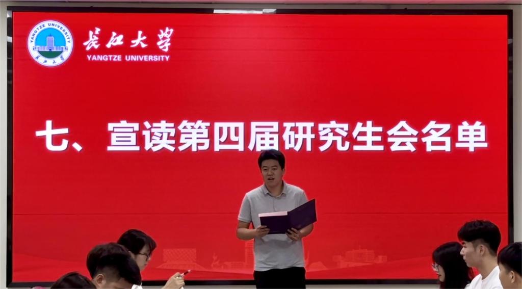 会议共有九项议程,第一项,全体参会人员起立奏唱国歌。会议第二项由第三届研究生会主席卢冰瑩发言,总结过去一年的工作情况,并对新一届研究生会寄予希望。会议第三项由黄仙、彭文秀分别为第三届研究生会主席团成员、部长颁发聘书。会议第四项由吴山宣读表彰文件,对研究生会工作给予充分的肯定。