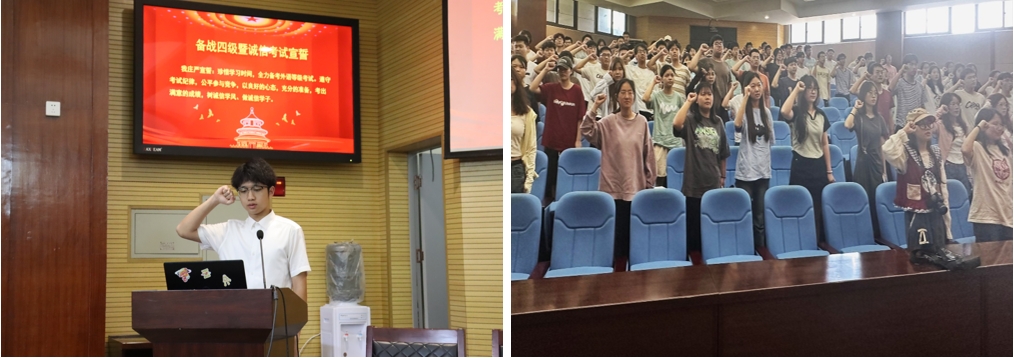 最后,智慧农业32302班谭远志带领全体2023级员工进行备战四六级暨诚信考试宣誓。