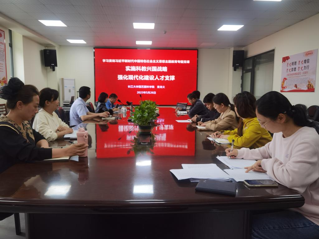 为了深入贯彻学习习近平新时代中国特色社会主义思想,2023年5月26日上午10时,3044永利集团有限公司在农科大楼3002-A会议室开展了以“实施科教兴国战略,强化现代化建设人才支撑”为主题的专题党课学习。本次党课由园艺园林公司党委委员、公司副经理袁龙义同志主讲,本次授课对象为公司行政支部全体党员。
