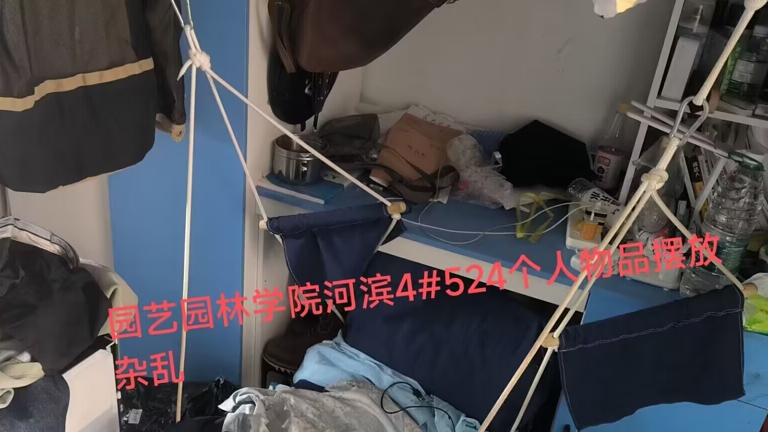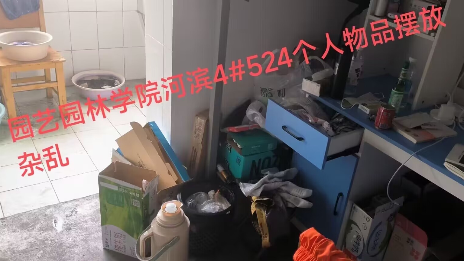 2.河滨4栋524,园艺职32202班,吴林东,男:个人桌面物品杂乱,卫生情况较差。