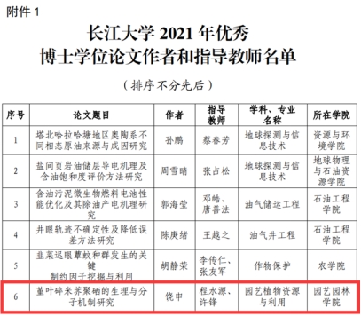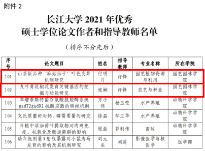 2018级硕士付明月以题为“山茶新品种‘麻姑仙子’叶色变异机制研究”获得优秀硕士论文,现于四川大学继续攻读博士学位;张娴以题为“九叶青花椒发育关键基因的挖掘和功能研究”获得优秀硕士论文,现于武汉植物园继续攻读博士学位。